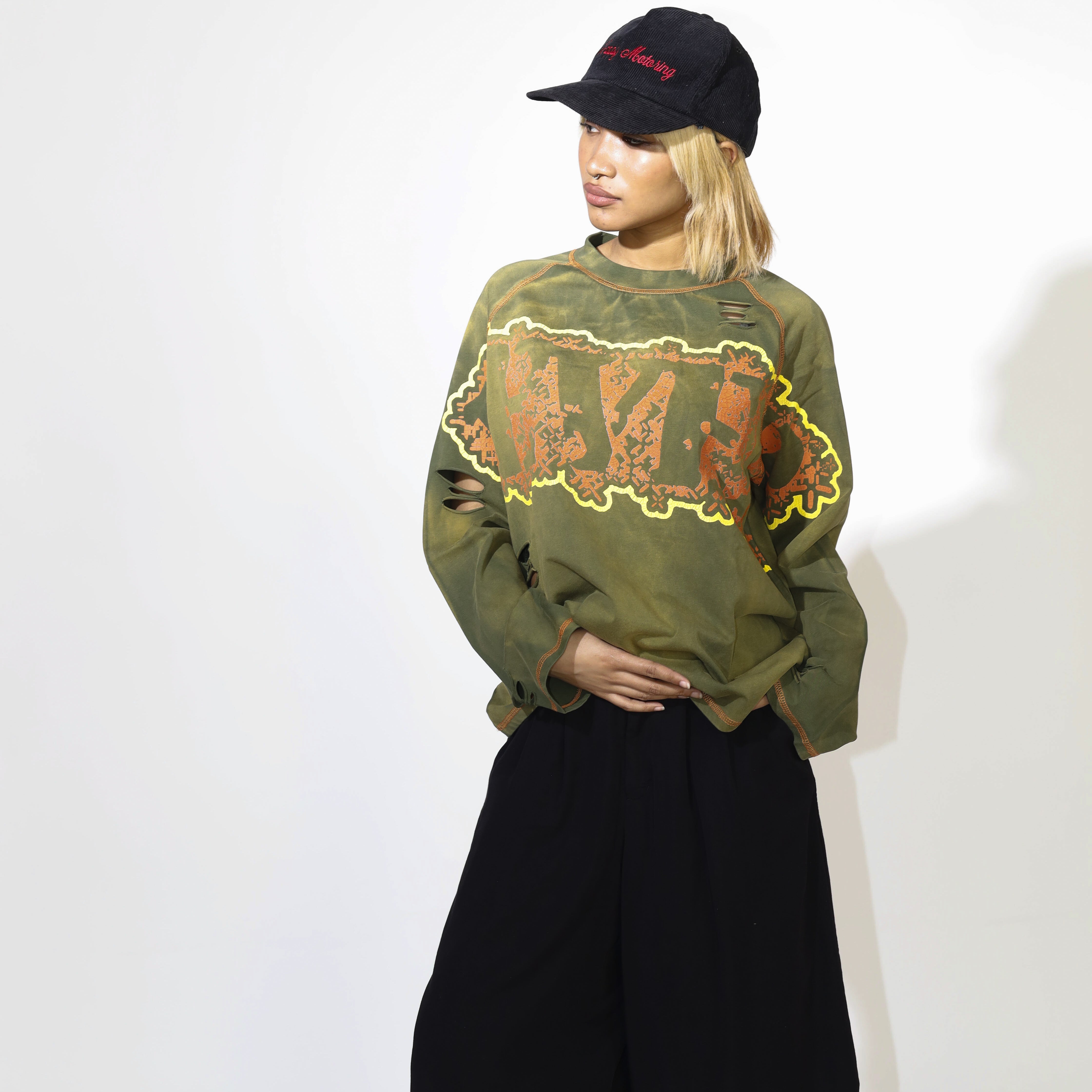 "Mobbed Out" Long Sleeve Tee in Moss